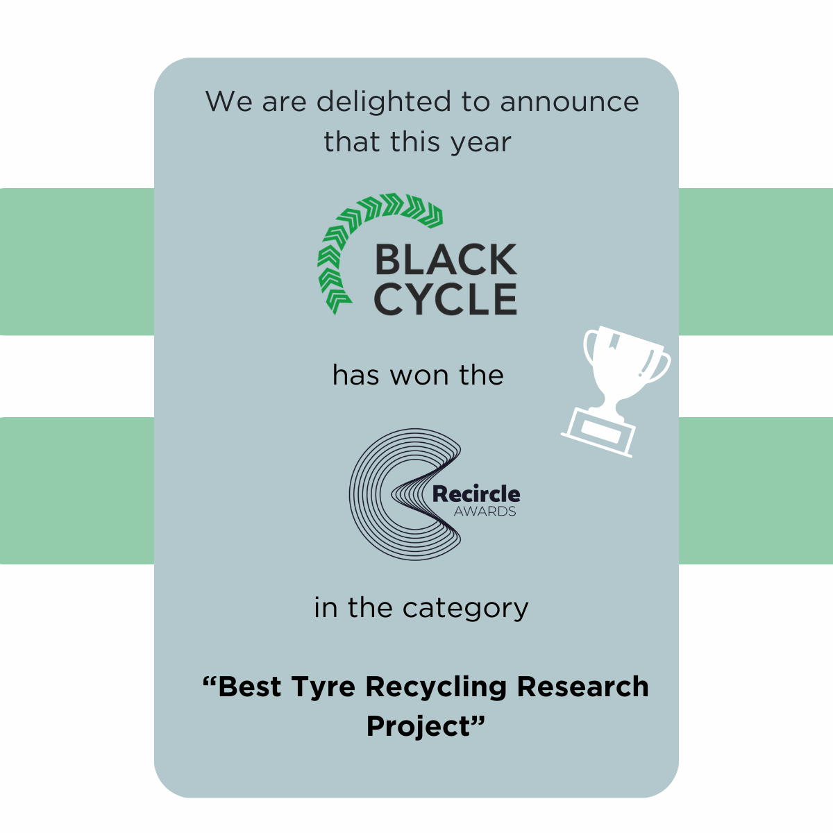 This Recircle award is a great recognition of the results of the project, aiming to create a massive circular economy for tires. Indeed, thanks to the BlackCycle project, the first sustainable carbon black (s-CB) produced from end-of-life tyre pyrolysis oil was made at the scale of several tons. That s-CB technology has been successfully introduced in a Michelin bus tyre along with other materials to get a sustainable rate of 58% (https://blackcycle-project.eu/).
